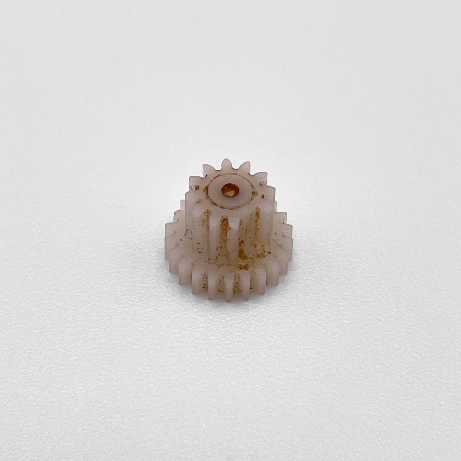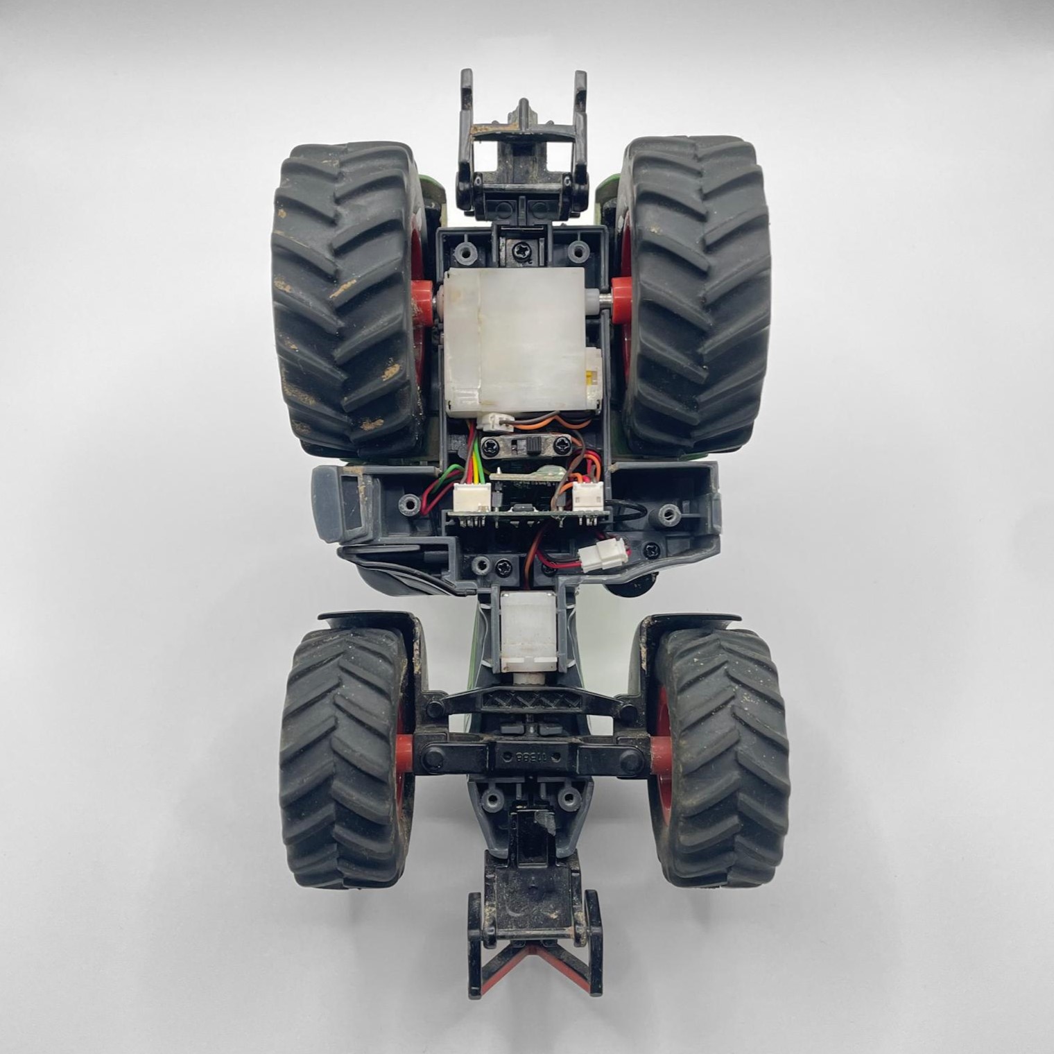 Im Antriebsstrang eines ferngesteuerten Siku-Traktors im Maßstab 1:32 waren die originalen Kunststoffzahnräder beschädigt – mehrere Zähne waren abgebrochen. Um die Funktion wiederherzustellen, wurden die betroffenen Zahnräder ersetzt.