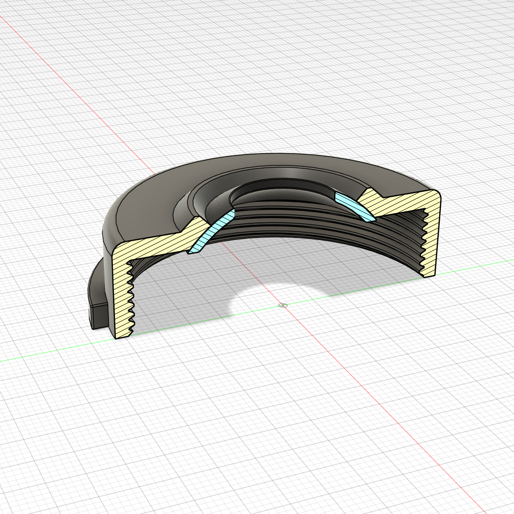 Der Verschluss wurde im CAD entworfen und aus flexiblem, widerstandsfähigem Kunststoff im FDM-Druckverfahren gefertigt. Gleichzeitig sorgt das schlichte Design in schwarzer Ausführung für eine saubere und unauffällige Optik.