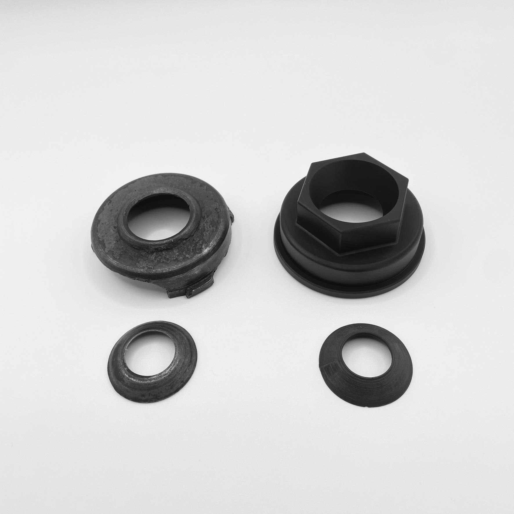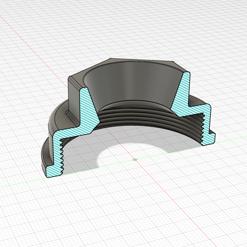 Das Bauteil besitzt ein Innengewinde M48x1,5. Anhand des Originalteils wurde zunächst ein CAD-Modell erstellt und anschließend im SLA-Verfahren aus schwarzem, ABS-ähnlichem Kunstharz gefertigt. Zusätzlich entstand eine zweite Version des Deckels mit aufgesetztem Sechskant (Schlüsselweite 36 mm), die ein leichteres Verschrauben ermöglicht.