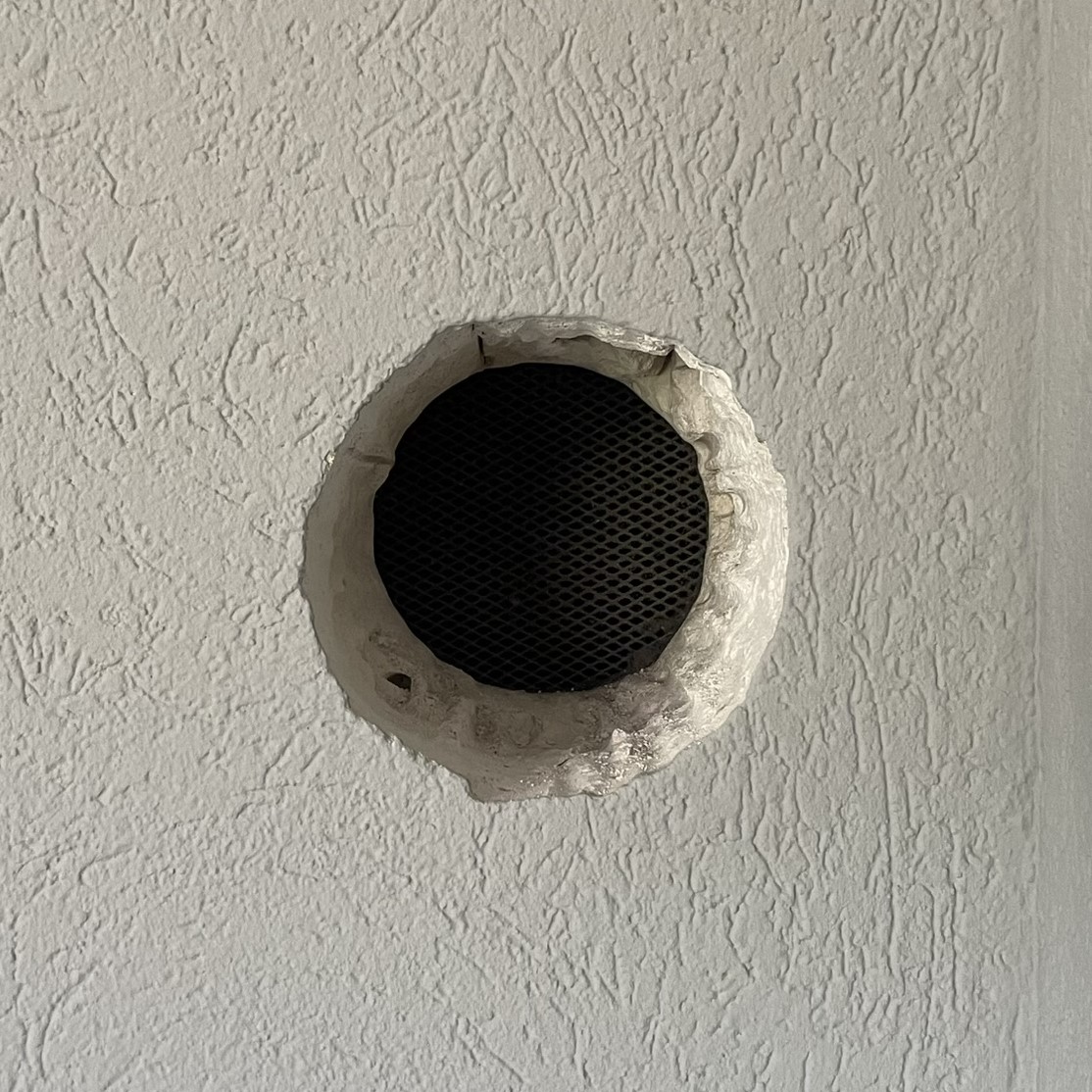 Das Durchgangsloch (Ø 17 cm) war ursprünglich für ein Kaminrohr vorgesehen. Da die Leitung nicht mehr existiert, wurde eine Abdeckung benötigt, um die Öffnung zu verschließen.