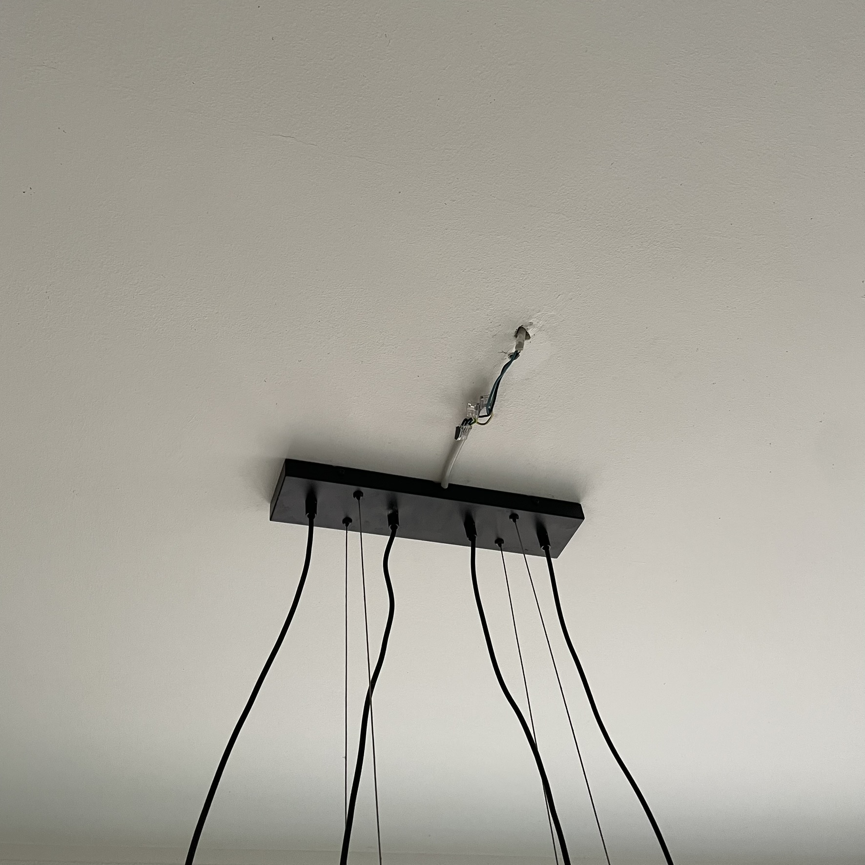 Bei der Montage einer neuen Deckenlampe lag der vorhandene Stromauslass nicht an der gewünschten Position. Das Kabel war daher frei sichtbar.