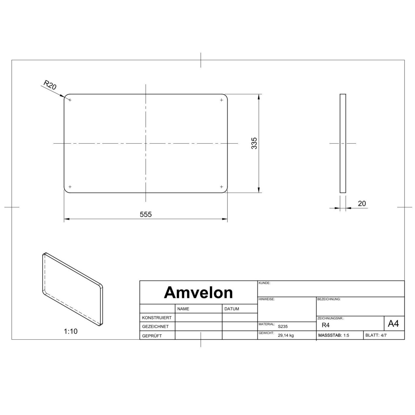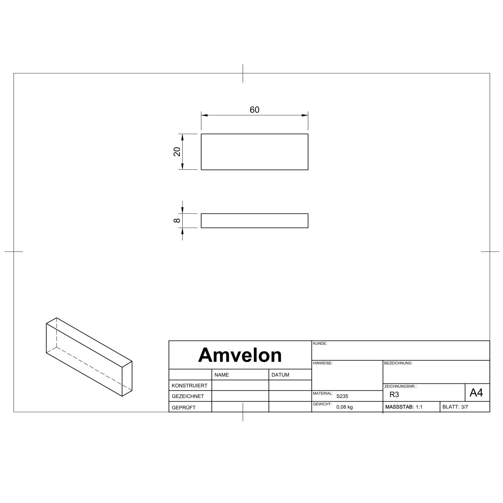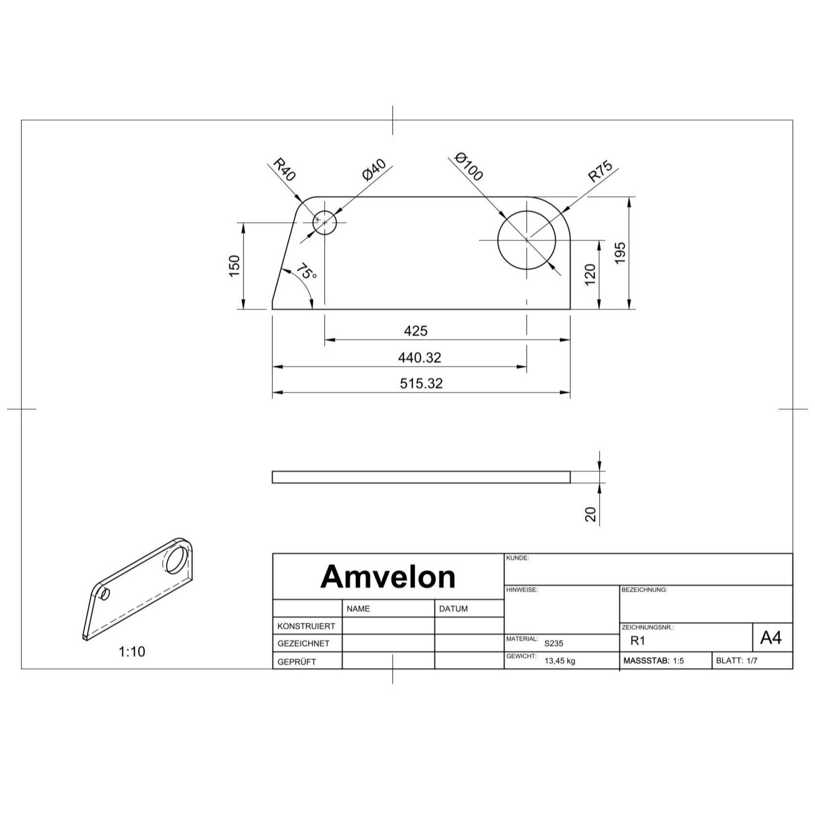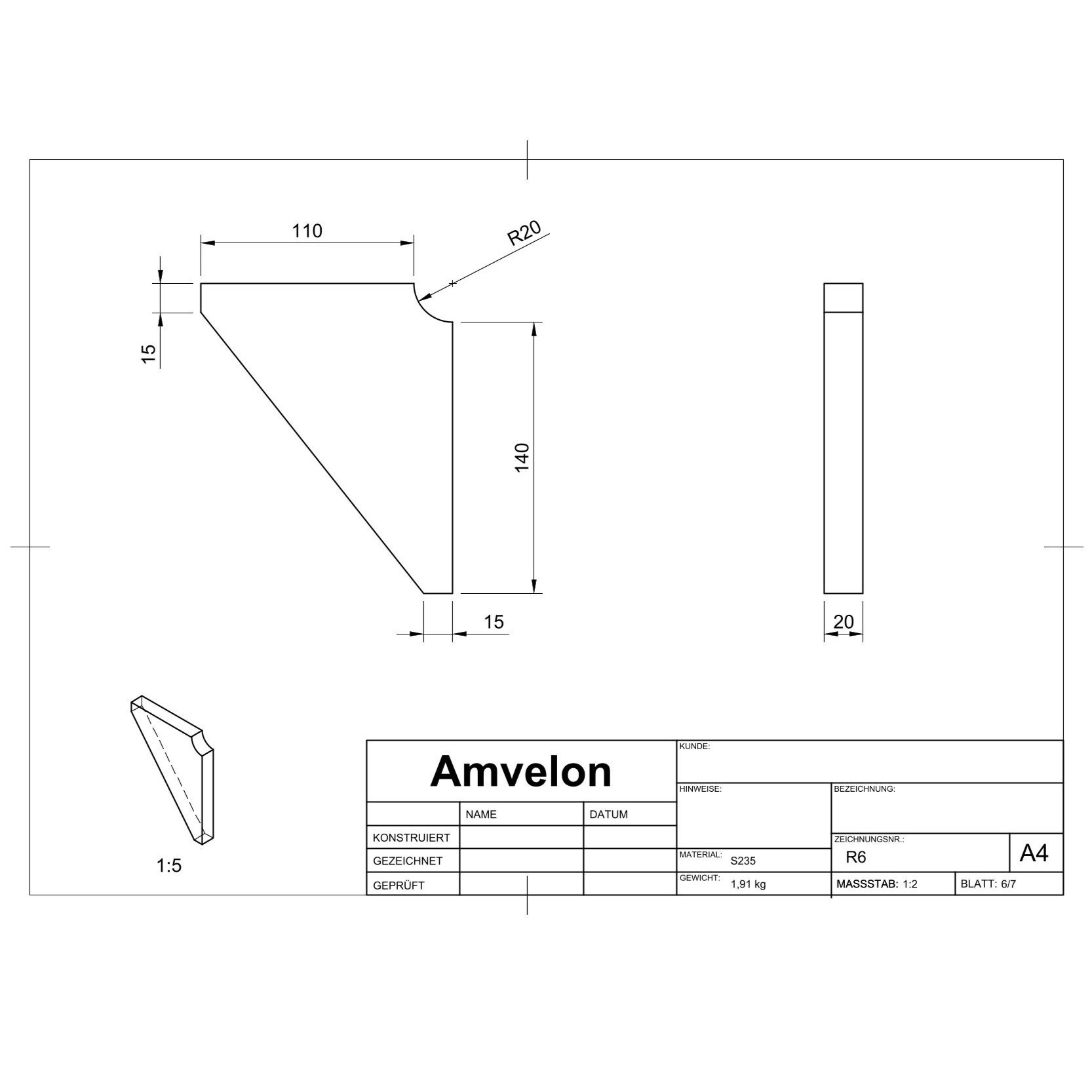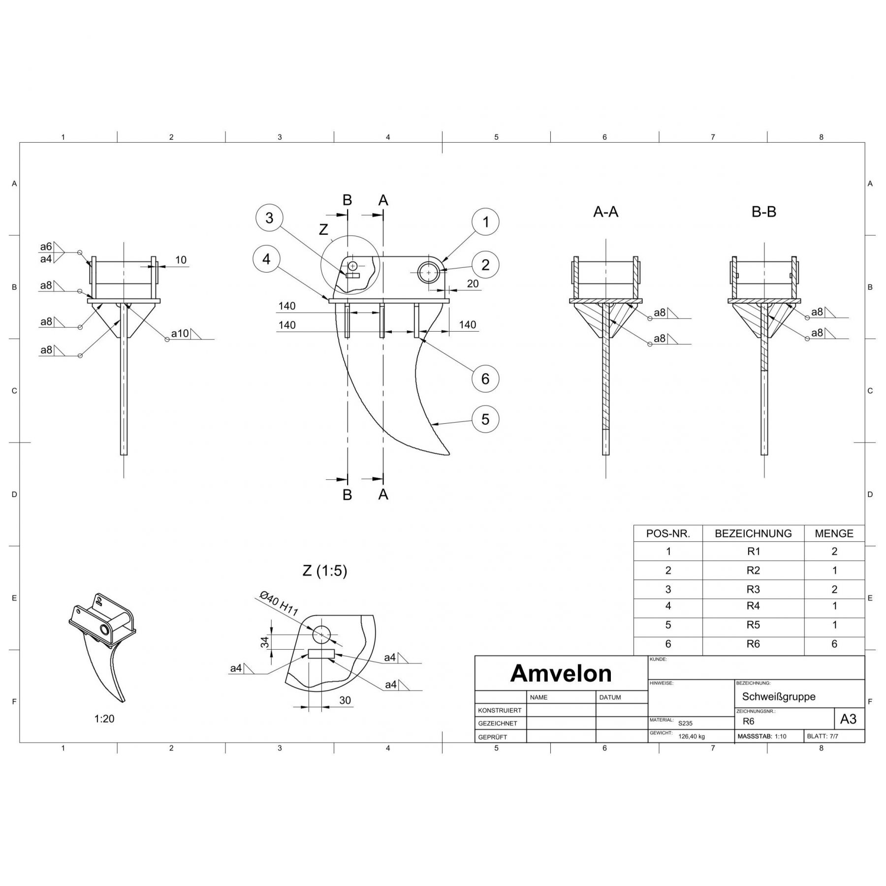 Für die Fertigung wurden sämtliche Einzelteilzeichnungen der Bauteile erstellt, ergänzt durch eine vollständige Schweißzeichnung der Baugruppe zur klaren Definition aller Fügeprozesse. Da ein Großteil der Komponenten mittels Plasmaschneiden hergestellt werden soll, wurden alle relevanten Konturen zusätzlich als DXF-Dateien bereitgestellt, um eine direkte und präzise Fertigung zu ermöglichen.