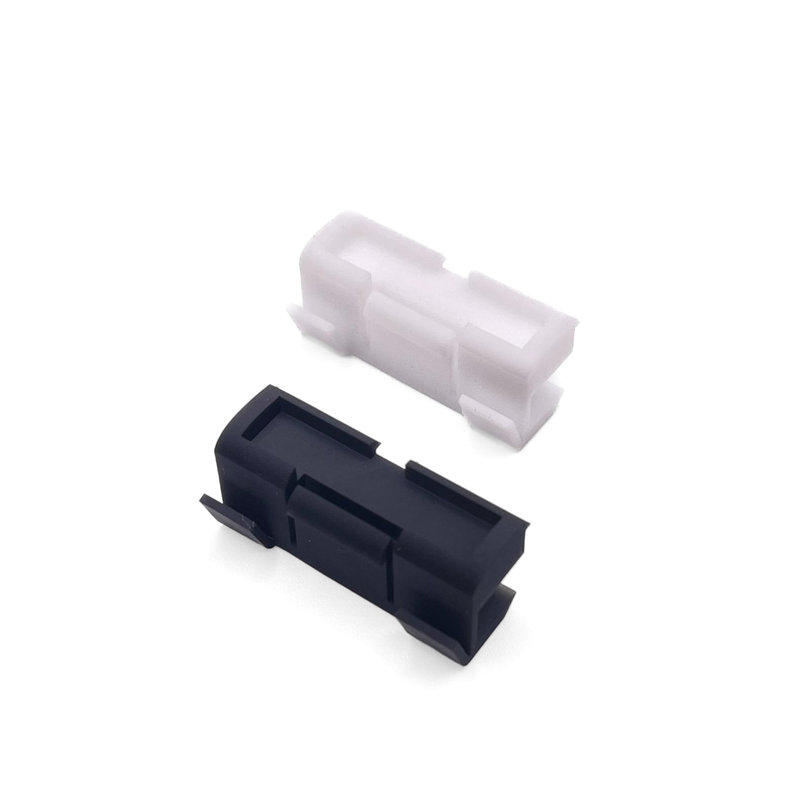 Die Clips wurden anhand der Originalteile im CAD-Programm konstruiert und anschließend im SLA-Verfahren aus ABS-ähnlichem Kunstharz gefertigt. Verwendet wurde weißes Material, entsprechend der originalen Farbe. Zusätzlich entstand eine schwarze Variante als Referenz.