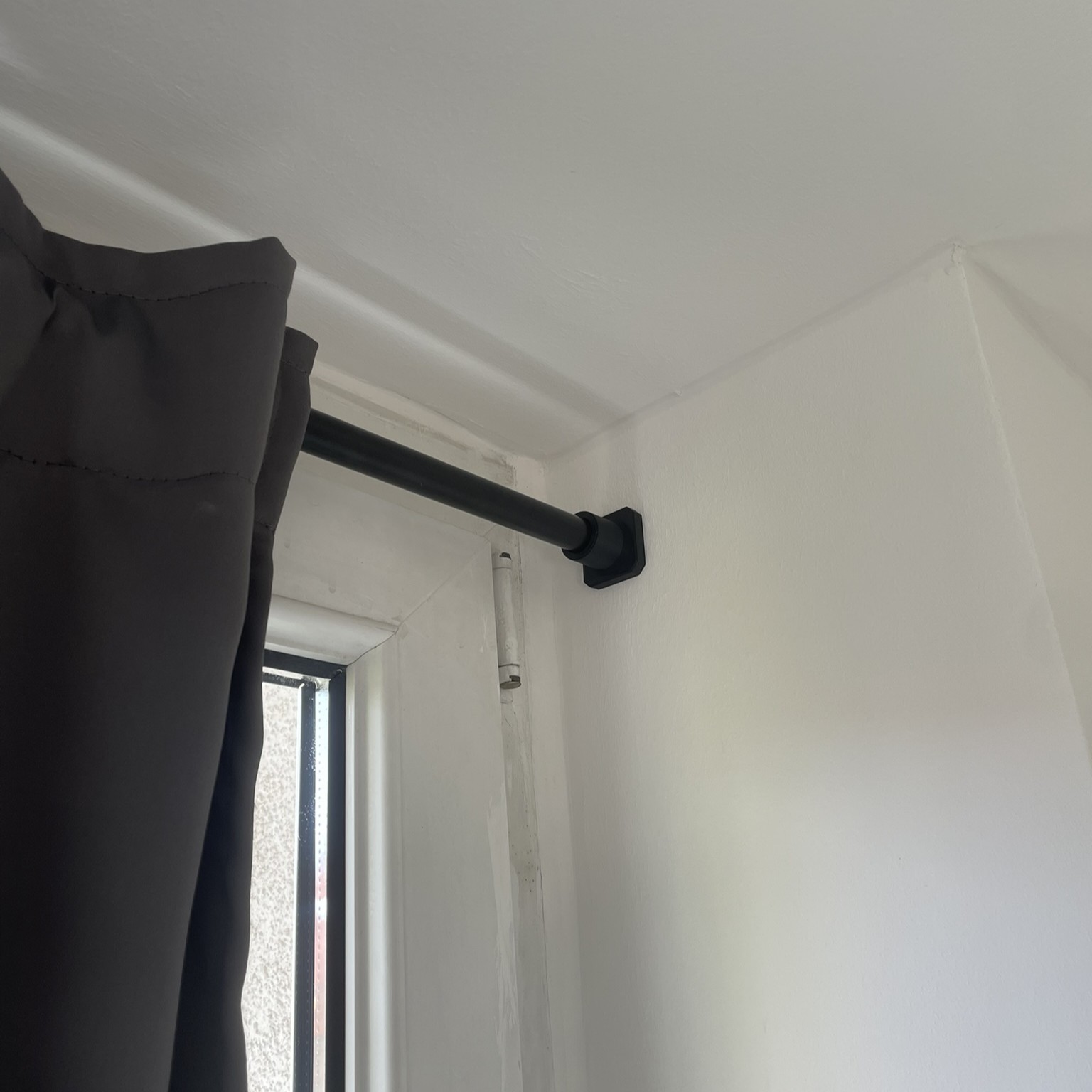Da hier das Fenster bündig bis an beide Seitenwände reicht, konnten die üblichen seitlichen Gardinenhalter nicht eingesetzt werden. Entwickelt wurde deshalb ein Paar individueller Wandhalter mit zentraler Schraubbefestigung und Presspassung. Die Stange wird nach der Montage einfach eingedrückt und sitzt formschlüssig, ohne sichtbare Schrauben.